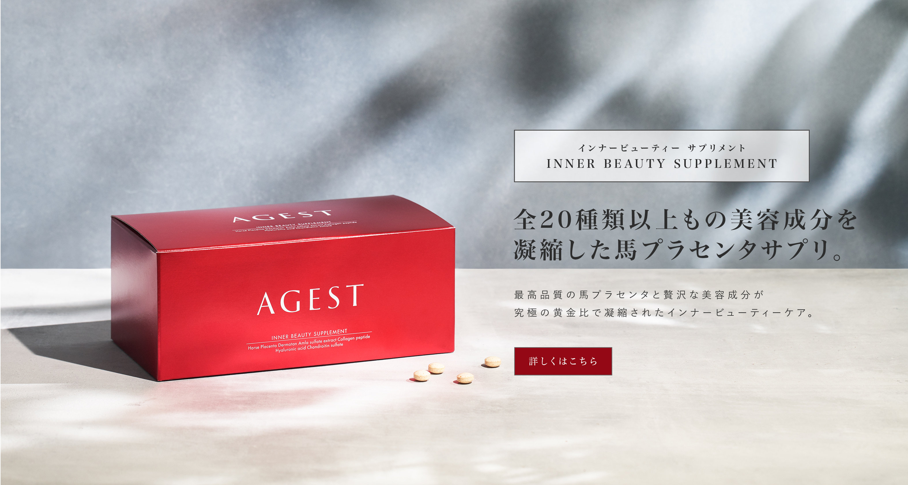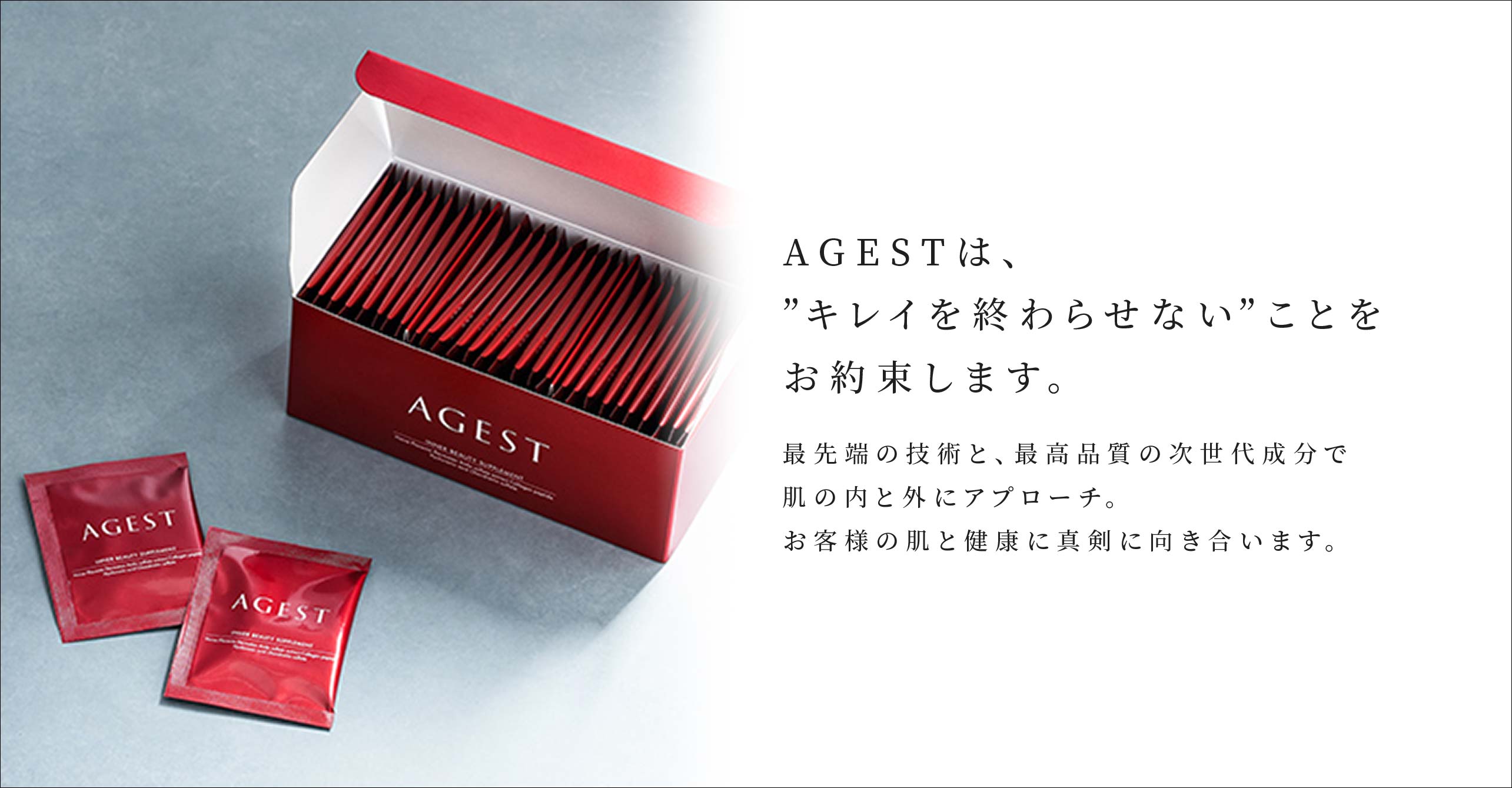 商品紹介PRODUCTS 商品一覧Products インナービューティーサプリメント詳細 ストーリーSTORY 「キレイを終わらせない」 いつも自分に正直でいること ときには自分を甘やかすこと でもときには我慢も必要 今この瞬間を楽しむこと 美しいものを愛し、自分を愛すること。 タブロイドTABLOID もっと見る 開発秘話PRODUCTS STORY AGEST開発の裏話や商品開発者が商品に込めた想いまで。エイジングケアの知識を深めるコンテンツです。 もっと見る